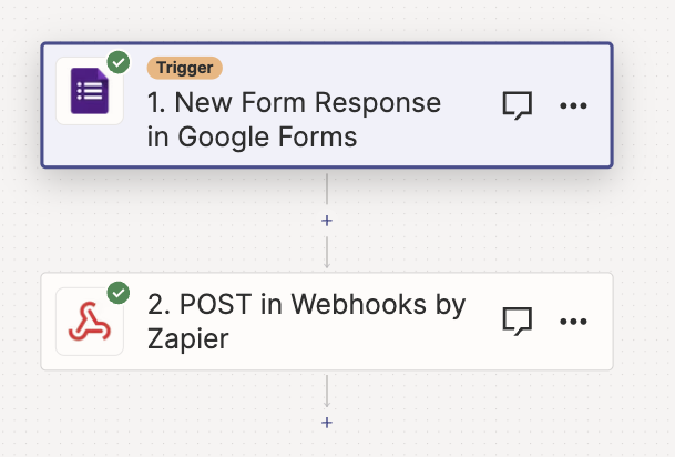 • A Zap trigger. This example will use new survey responses from Google Forms